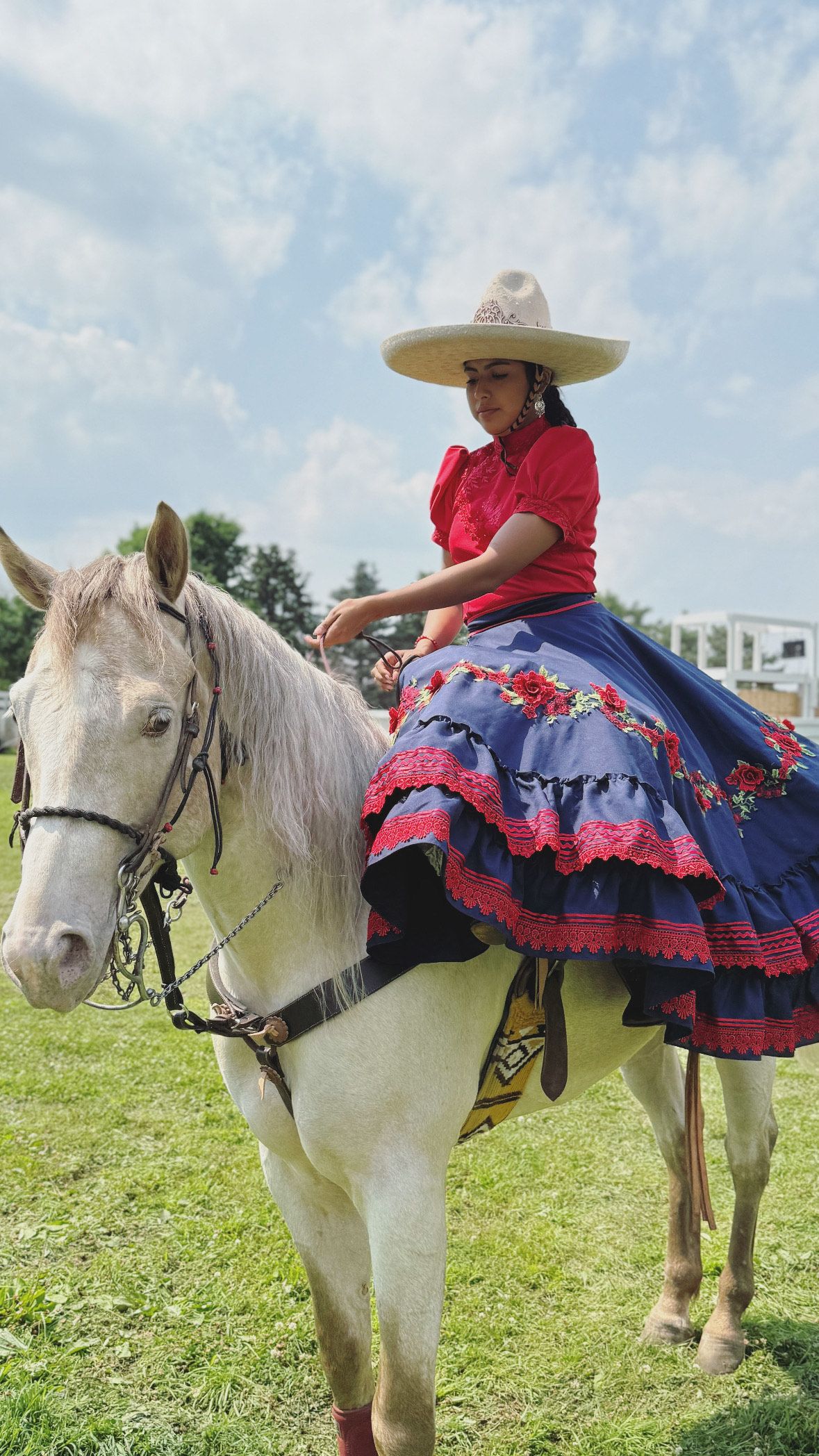 Our Team is Committed to Developing the Confidence and Talents of Young Women. At Las Alazanas de Minnesota, we are passionately dedicated to unlocking the potential of young women, aged [e.g., 12-25], by cultivating their confidence and talents through the transformative art of Escaramuza charrería. Our program provides a nurturing space where each rider grows into a stronger, more self-assured individual, mastering the intricate skills of synchronized equestrian performance while riding sidesaddle in the iconic adelita dresses. This rigorous training builds discipline, enhances physical and mental resilience, and fosters teamwork—life skills that empower our girls to excel both in and out of the arena. Rooted in the rich heritage of Mexican charrería, we instill a deep sense of cultural pride, connecting our riders to their Minnesota Hispanic community and inspiring them to lead with purpose. How We Empower Our Youth Boosting Confidence: Overcoming the challenges of Escaramuza’s demanding routines helps each rider embrace her strengths, turning hesitation into boldness with every gallop. Nurturing Talents: Through dedicated practice, our riders refine their equestrian expertise, artistic expression, and competitive spirit, preparing them for events like our triumphant trip to the National competition in Texas last year. Fostering Leadership: From guiding younger teammates to choreographing performances, our girls step into leadership roles, developing decision-making and mentorship skills that shape their futures. Inspiring the Community: By performing at local events and hosting youth clinics, our riders serve as role models, encouraging girls across Minnesota to pursue their passions with pride and determination.